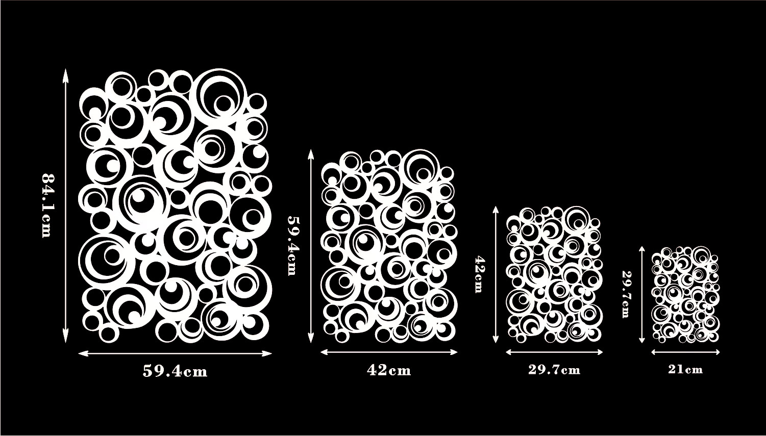 29,7cm x 21 cm, 42 cm x 29,7 cm, 59,4 cm x 42 cm, 84,1 cm x 59,4 cm