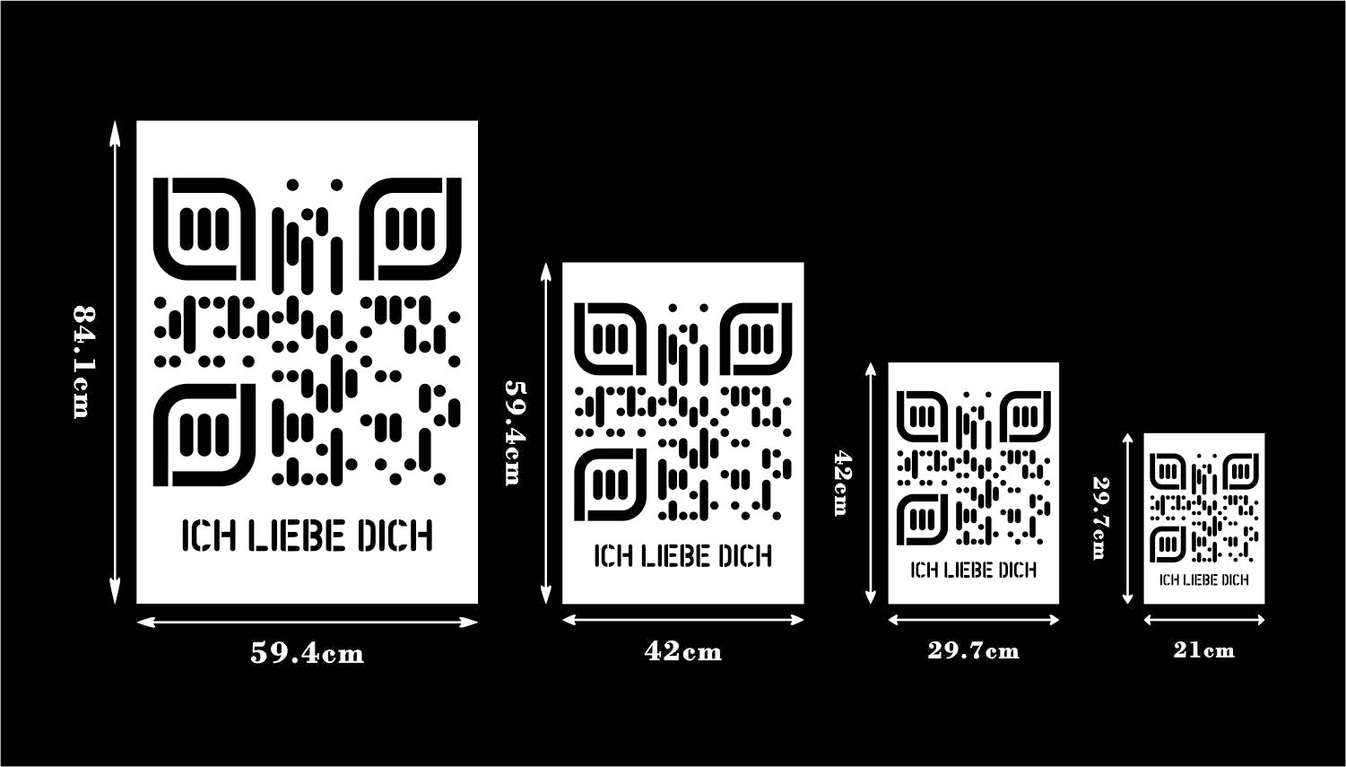 Kreatives QR-Code Kunstdesign – Ich liebe dich – 4 Größen