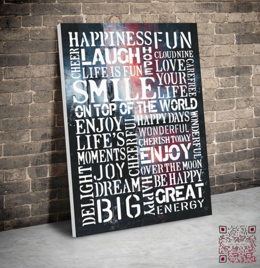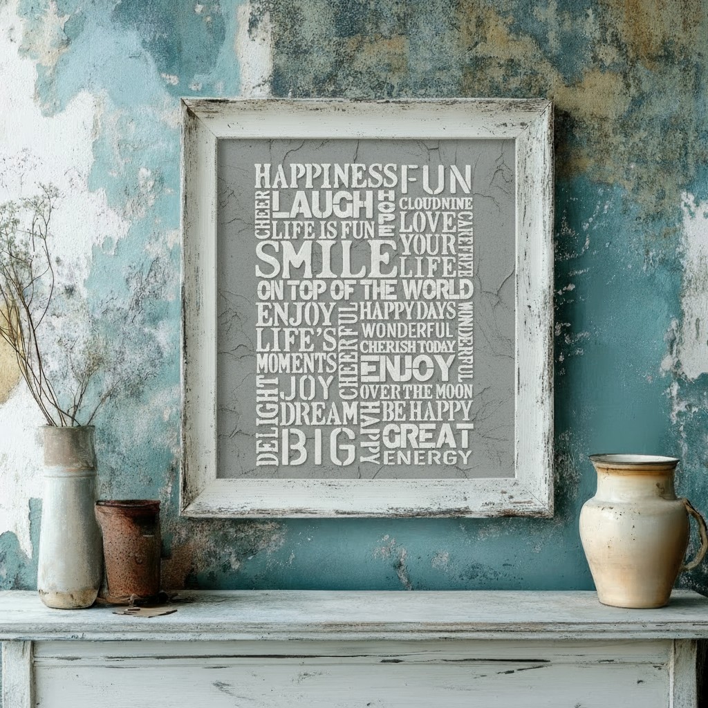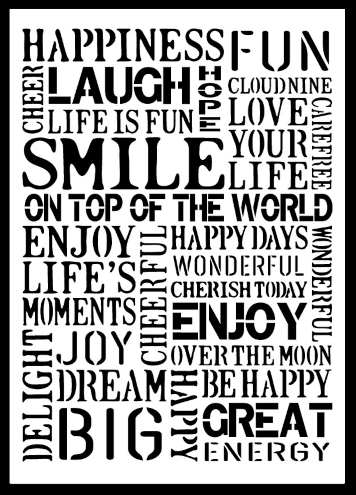 Schreibe die erste Rezension für „WordArt-Schablone „Happiness & Smile“ – Moderne Typografie – 4 Größen“