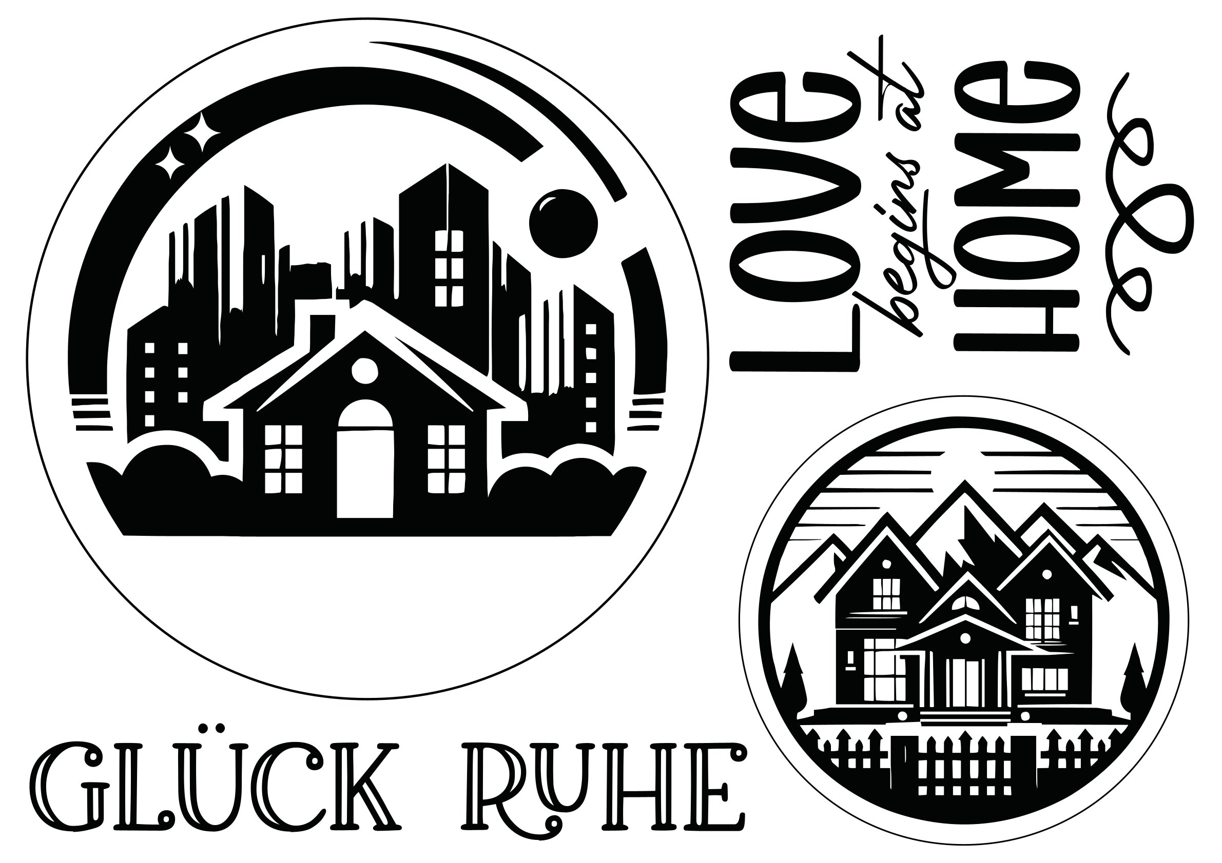 City • Home • Harmony – Love begins at home – Glück-Ruhe – Selbstklebende Siebdruck-Schablone