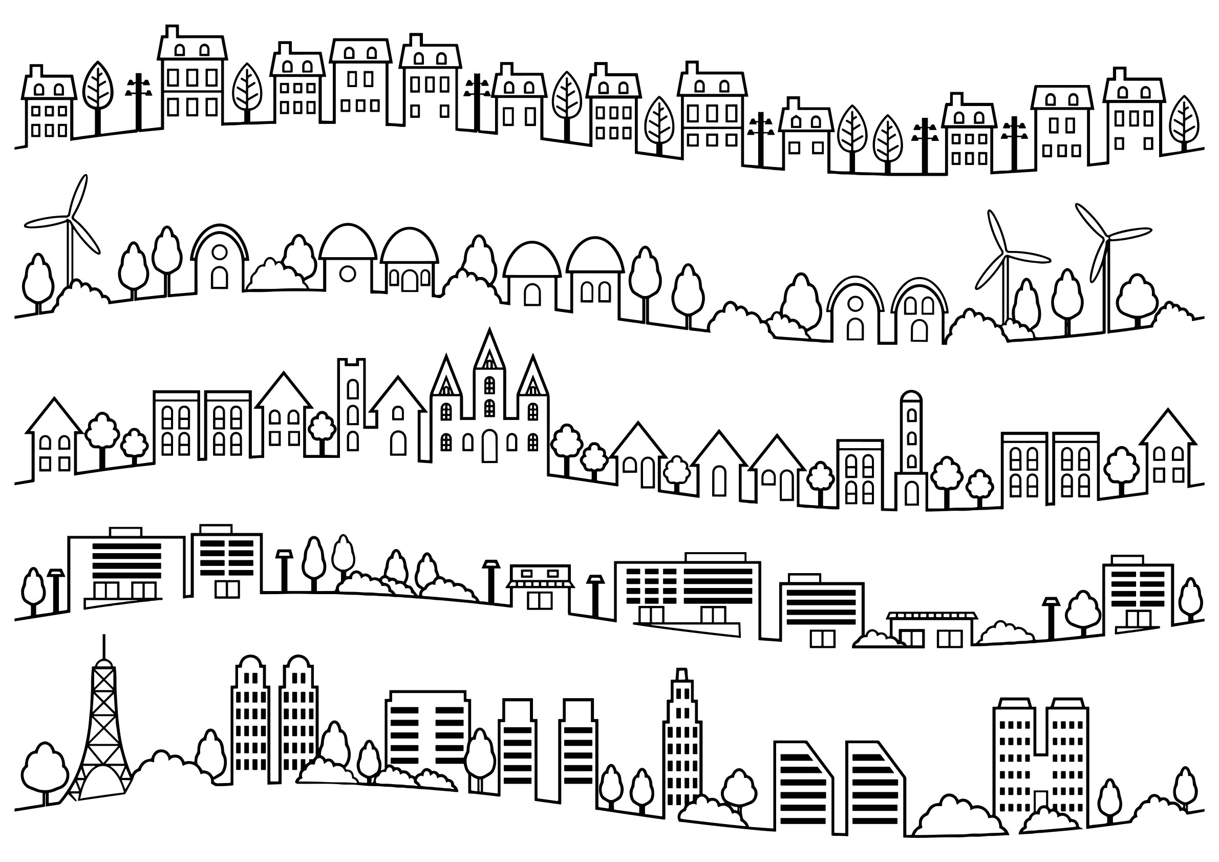 Dorf & Stadt in Lineart – Selbstklebende Siebdruck-Schablone